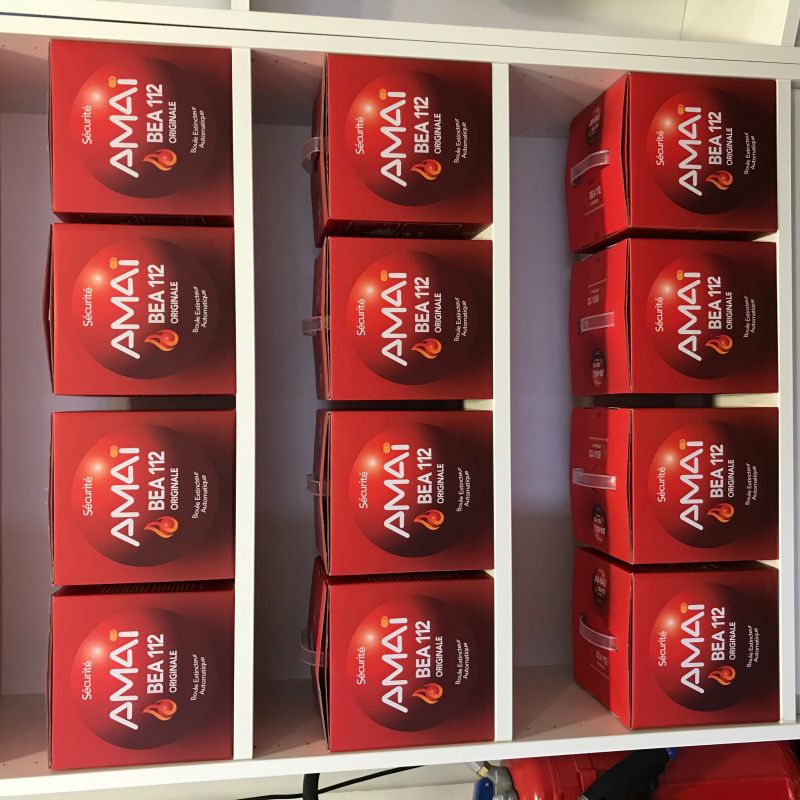afin de cibler au mieux le départ de feu. La boule ne flotte pas : Le mode automatique avec fixation au plus près est donc obligatoire pour des départs de feux de matières liquides. Le champ d'action de la boule extincteur automatique est limité seulement et uniquement aux départs de feux ( environ 3m3 ). Une Boule extincteur BEA 112 ne permet pas d'éteindre des feux déjà étendus et avancés.
