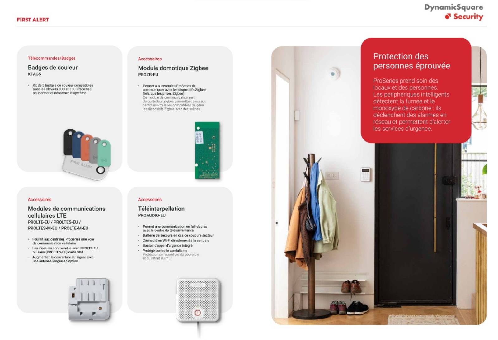Compatibilité et modularité : systèmes filaires et sans fil, intégration domotique possible.